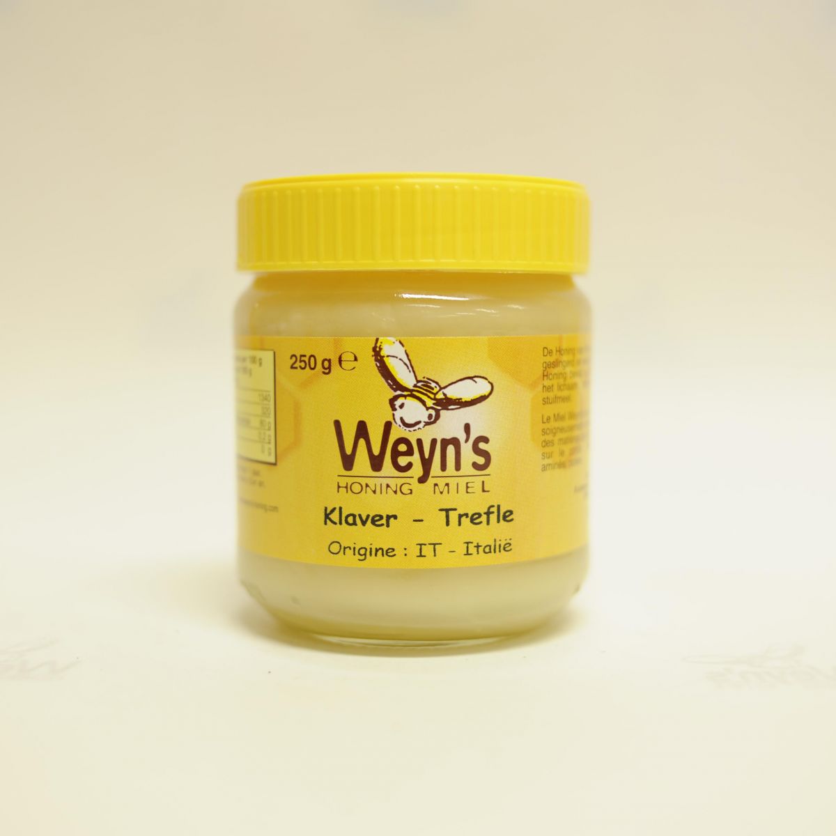Clover Honey is produced by bees from the nectar of the white clover (Trifolium Repens). This monofloral honey has a white colour and is characterised by a fast crystallisation. The honey is creamy and has a soft, sweet flavour. Weyn's offers Canadian as well as Italian Clover Honey.